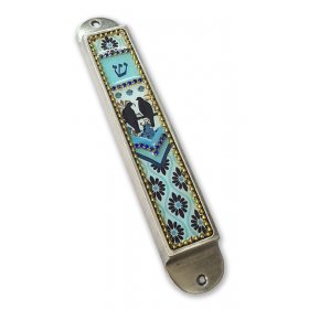 Iris’s Mezuzah case collection presents us with stunning samples of modern art blended with ancient tradition. A beautiful leaf design with a beaded frame comes in a choice of colors. An original design is the mezuzah case featuring the Shema text etched into the front of the case. Other Mezuzah case display sweet girly faces, making them the perfect bat mitzvah gifts.