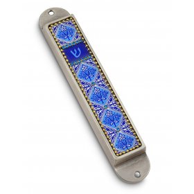 Iris Design Handcrafted Pewter and Enamel Beaded Mezuzah Case, Blue - Flowers$50.77 - $54.19 -