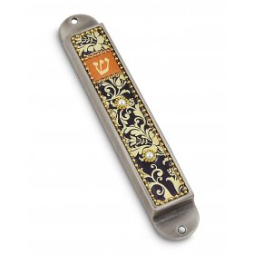 Iris Design Handcrafted Pewter & Enamel Beaded Mezuzah Case - Golden Swirls$50.77 - $54.19 -