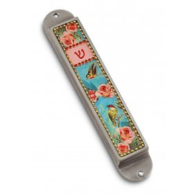 Iris Design Handcrafted Pewter Enamel Beaded Mezuzah Case - Roses and Birds$50.77 - $54.19 -