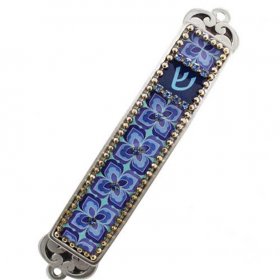 Iris Design Handcrafted Pewter & Enamel Beaded Mezuzah Case - Blue Flowers$50.77 - $54.19 -
