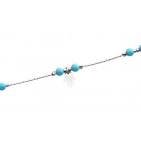 Anklet, Rhodium Silver Chain with Blue Beads and Hamsa$6.41 -