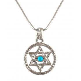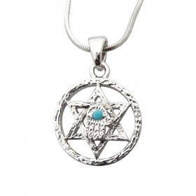 Pendant Necklace, Star of David in Circle with Hamsa and Blue Stone - Silver$6.41 -