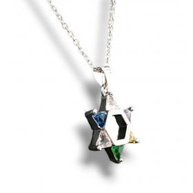 Star of David with multicolor stones Rhodium Necklace$6.68 -