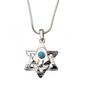 Pendant Necklace Star of David with Hamsa and Blue Stone$6.41 -