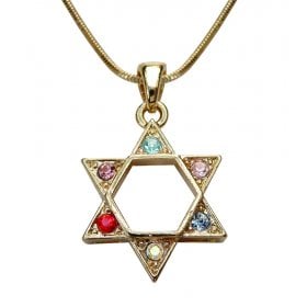 Rhodium Pendant Necklace, Gold Star of David with Colored Stones$6.41 -