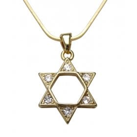 Rhodium Pendant Necklace, Gold Star of David with White Stones$6.41 -