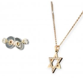 Star of David Pendant Necklace with Stud Earrings, Rhodium Silver or Gold$5.42 -