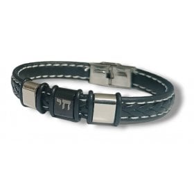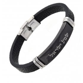 Leather Style Black Bracelet with Metal Plaque - Shema Yisrael$11.16 -