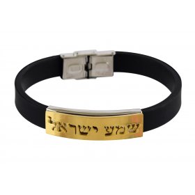 Black Rubber Wristband Bracelet with Gold Metal Plaque - Shema Yisrael$11.16 -