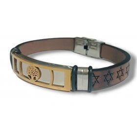 Brown Leather Bracelet, Stars of David - Center Plaque with Gold Tree of Life$10.95 -