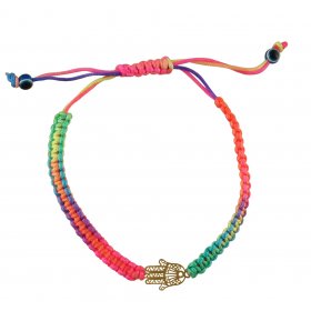 Neon Multicolor Braided Cord Bracelet - Gold Hamsa$5.01 -
