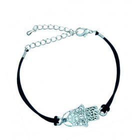 Rhodium Hamsa Bracelet on Leather Cord$11.43 -