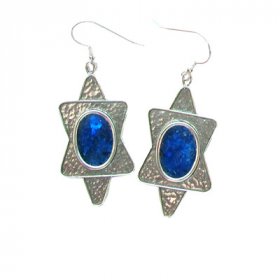 Michal Kirat Hammered Sterling Silver Star of David Drop Earrings - Roman Glass$99.53 -