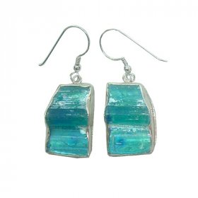 Michal Kirat Handmade Sterling Silver Drop Earrings, Roman Glass as Sea Waves$116.13 -