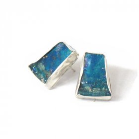 Michal Kirat, Handmade Sterling Silver Rectangle Stud Earrings, Roman Glass$116.13 -