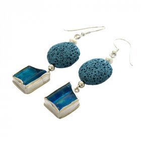 Michal Kirat Sterling Silver Dangle Earrings with Roman Glass and Blue Lava Bead$159.26