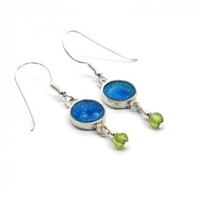 Michal Kirat Sterling Silver Dangle Earrings with Roman Glass and Peridot Beads$46.45 -