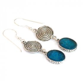 Michal Kirat Silver Sterling Dangle Earrings with Roman Glass – Antique Style$54.19 -