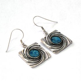 Michal Kirat Hamsa Good Luck Silver Drop Earrings with Roman Glass Center$99.53 -