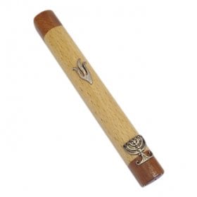 Two Tone Brown Wood Mezuzah Case with Shin and Menorah in Gold Pewter$18.62 - $23.30 -