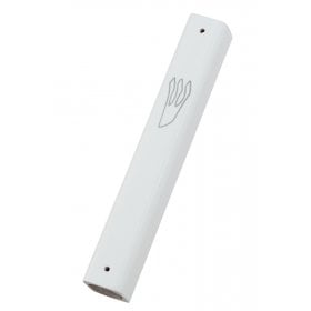 White Wood Rounded Mezuzah Case – Flame Image Shin in Silver Pewter$15.12 - $17.46 -