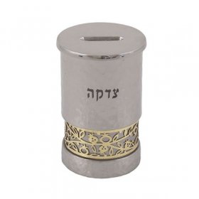 Yair Emanuel Charity Box, Cutout Pomegranates and Word Tzedakah – Silver and Gray$54.19 -