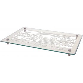 Dorit Judaica Tempered Glass Challah Board - Shabbat Shalom$49.00 -
