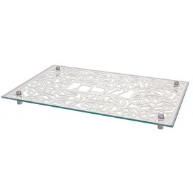 Dorit Judaica Tempered Glass Challah/Candlestick Tray, Flower Design$104.75New! -
