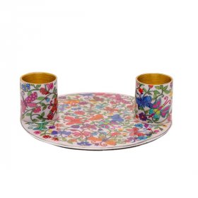Yair Emanuel Small Candle Holders on Attached Tray - Colorful Flower Design$14.00New! -