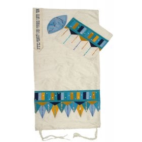 The stunning craftsmanship on Rikmat Elimelech Tallitot will leave you awed. There is the classic handloom woven Tallit in deep, rich colors in a quality weave of silk and wool for quality, durability and beauty. Then there are the silk printed Tallitot with Biblical themes depicted in lively animations, colors and designs, with matching Kippah and bag. Last but not least, the embroidered Tallits come in diverse shades and designs such as a leafy pomegranate branch, Menorah, or a picturesque City of David design for a meaningful and beautiful religious item.