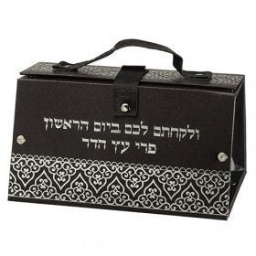 Dark Brown Decorative Box-Shaped Etrog Holder, Ornate Handle - Faux Leather$57.51 -