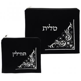 We bring you a selection of Tallit and Tefillin bags. They are made from quality velvet – the fabric of choice that is always popular. They feature traditional embroidery designs – geometric shapes in the center or the corner, decorated flowers, swirls or crowns. On most of them, the word “Tallit” or “Tefillin” is embroidered in Hebrew in the center. Colors are dark blue or royal blue – always favorites.
