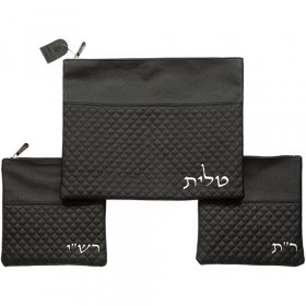 Faux Leather Tallit and Tefillin Bag Set - Black with Diamond Design$35.49 -