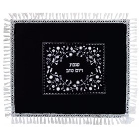 Classic Dark Blue Velvet Challah Cover with Silver Pomegranate Embroidery$26.78New! -