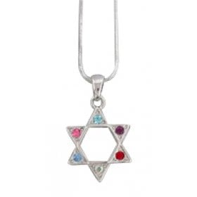 Rhodium Star of David Pendant Necklace - Colored Stones$6.68 -