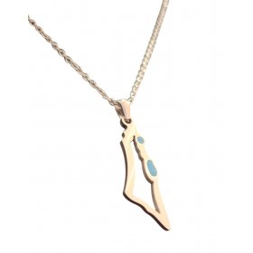 Gold Stainless Steel Pendant Necklace, Outline Map of Israel with Blue Enamel$12.06 -