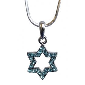 Star of David with light blue stones Rhodium Necklace$6.68 -
