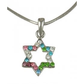 Star of David with multicolor stones Rhodium Necklace$6.68 -