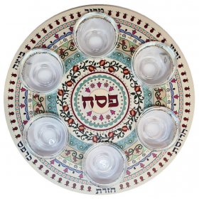 Dorit Judaica Circular Seder Plate with Six Dishes - Delicate Pomegranate Design$100.96New! -