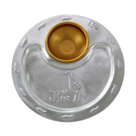 Shraga Landesman Raised Silver-Nickel Etched Tray with Gold-Nickel Honey Dish$121.36 -