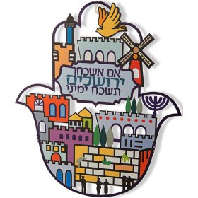 Dorit Judaica Wall Hamsa with Hebrew If I Forget Thee with Old City ImagesSize: 7" x 9.6"$38.90 -