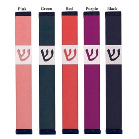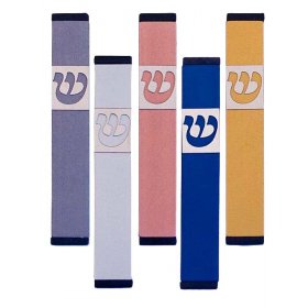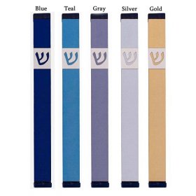 The Mezuzah Case is attached to the right hand doorpost and contains the parchment inscribed with special Torah verses from the Shema Yisrael prayer recited daily by Jews. The one of a kind items offered here run the gamut from classic to supermodern. The avant-garde cylinder cases are rounded and come in bold bright shades and gentle pastel colors. The cases come in a range from small to extra large size. A favorite one for those in the medical field is the case with the Cadeuceus symbol. The wheat decorated ones symbolize bounty and nature and one of the most favorite ones,is the Shema series. More modernistic ones include the target one, and the modern shin one for a really contemporary composition.