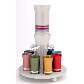 On our aJudaica website, you can stroll through our selection of Agayof modern-style quality Kiddush cups or Kiddush Fountains. You will be impressed with his original elegant styles and the choice of exquisite colors available for each item.