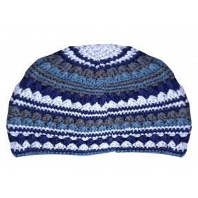 Frik Kippah Thick Crocheted Weave of Black, White and Shades of Blue StripesSize: 9.4"$6.42 -