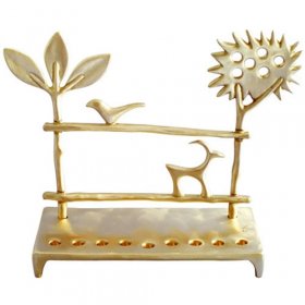 Shraga Landesman Hanukkah Menorah with Acacia Tree, Deer and Bird - GoldWidth: 9.4"$172.56 -