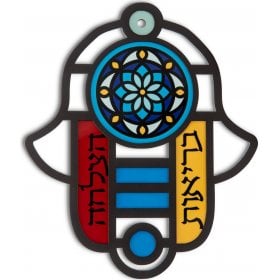 Dorit Judaica Modern Wall Hamsa in Stained Glass Art Style – Hebrew Blessings$50.87 -