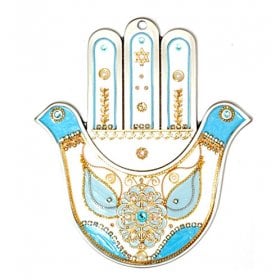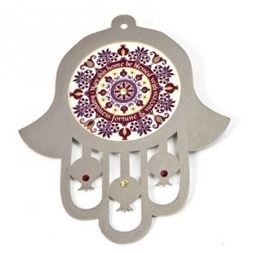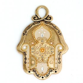 Ajudaica offers a huge selection of Hamsas. There are Hamsa wall decorations, clothing, jewelry and ritual articles. We offer a range of low cost affordable metal Hamsas together with prestigious decorative Hamsas bedecked with beads and semi-precious stones. Many have been designed and produced by leading Judaica artists such as Michal ben Yosef, David Gerstein, Tzuki, Dorit Judaica, Ester Shahaf and others.