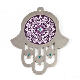 Dorit Judaica Purple Stainless Steel Wall Hamsa Home Blessing - EnglishSize: 4.7" X 5.7"$42.03 -