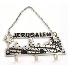 Wall Key Hanger with Chain, Jerusalem Landscape - Silver and Black$11.63 -